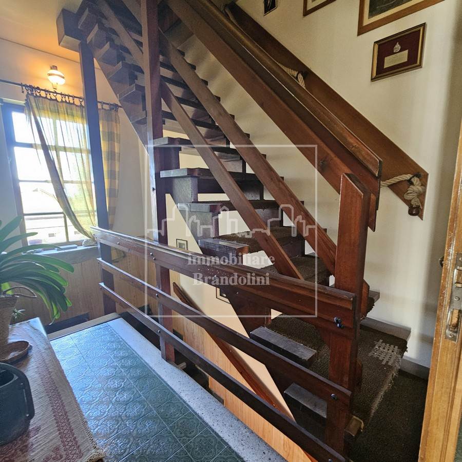 Situata al primo piano di una casa bifamigliare, dispone di scala d'ingresso privata, un soggiorno, ampia cucina / pranzo con camino, due camere matrimoniali, due balconi, bagno. L'appartamento è collegato internamente al piano mansarda con due locali con finestra, bagno e due sottotetti uso ripostiglio Completa di grande cantina, tre posti auto coperti e splendido giardino di pertinenza mq 600 circa oltre a lotto di mq 740 con possibilità di edificazione.